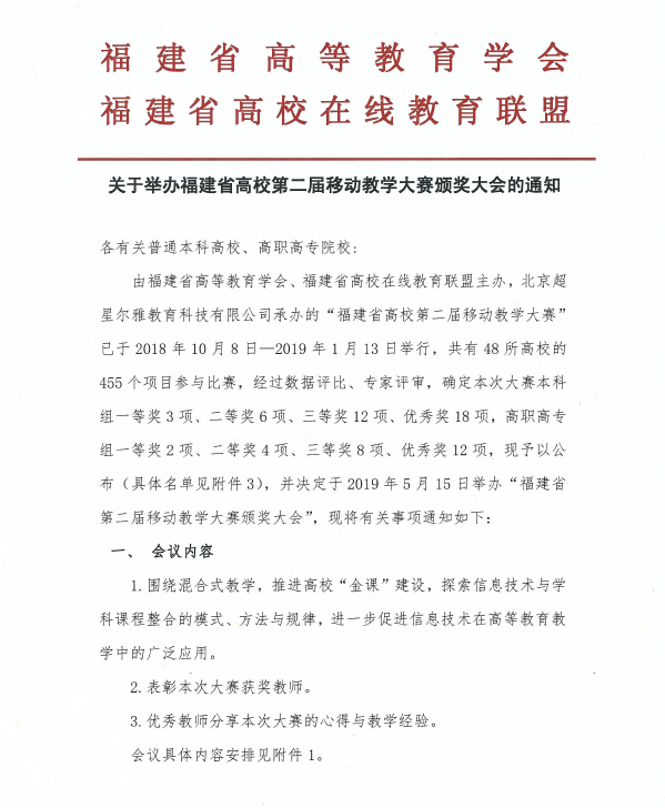 大赛旨在进一步推动我省高校在线开放课程建设与应用共享,促进信息技术与教育教学深度融合,推动高等学校教育教学改革,提高高等教育教学质量,服务学习型社会建设。