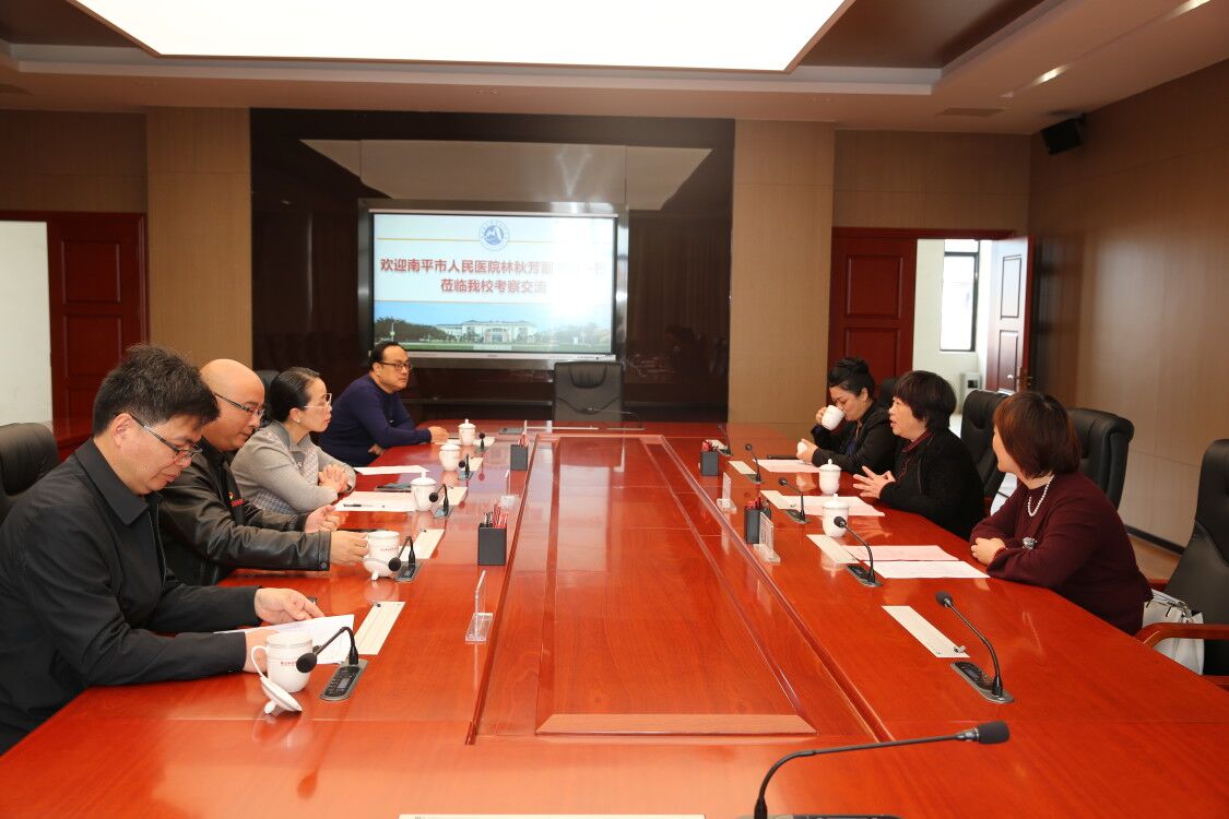 郑翠红代表学校向南平市人民医院领导的来访表示热烈欢迎,她简要介绍了学校的办学历史、办学情况等。林秋芳也介绍了南平市人民医院的概况。会上,双方就合作办学模式、人才培养等方面进行了探讨和交流,希望本着供需契合、优势互补和同向发展的原则,能够进一步加强校院合作,让学校培养的中医学人才更好地服务于地方医改事业。