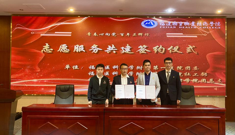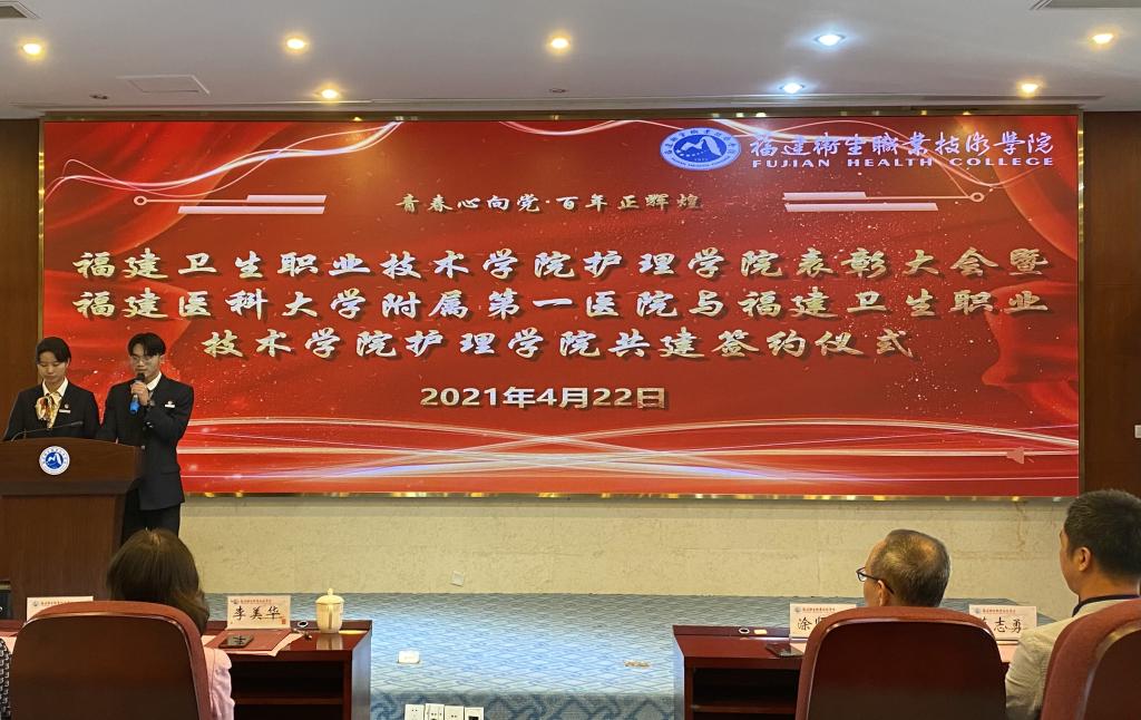 为弘扬志愿服务精神,搭建“资源共享、优势互补、协调发展”的共建平台,进一步推动护理学院志愿服务高质量发展。4月22日下午,在实训楼四楼报告厅举行“青春心向党,百年正辉煌”福建医科大学附属第一医院与福建卫生职业技术学院护理学院共建签约仪式。