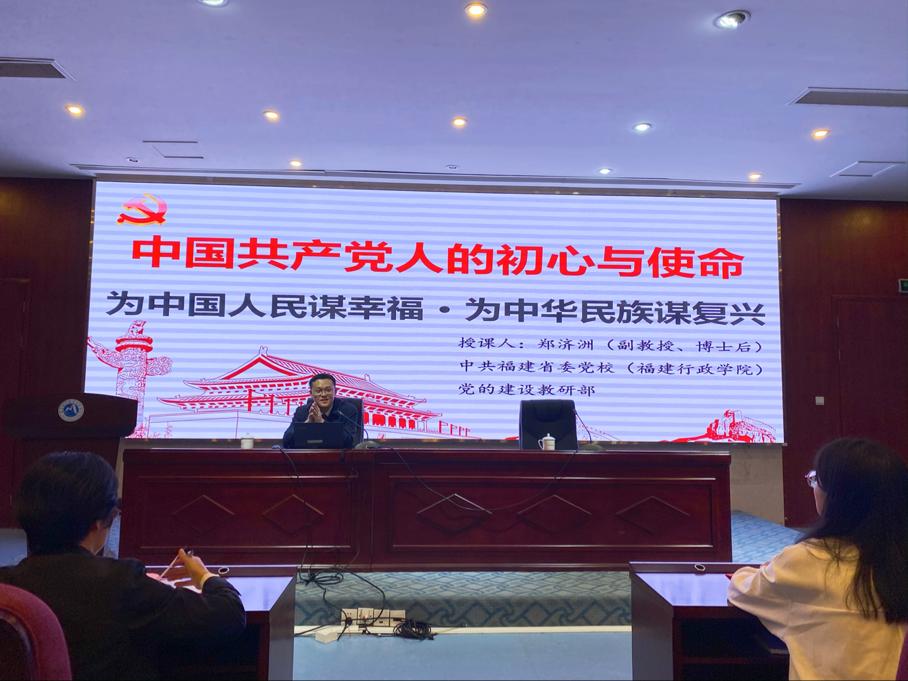 郑济洲作《中国共产党的初心和使命》专题讲座。他从“苦难与辉煌、立场与思想、梦想与实践”三个方面阐述了中国共产党“民族复兴的历史使命、服务人民的永恒初心及伟大斗争的时代精神”;从中华民族五千年的文明历史到中国共产党的崛起、发展,强调中国共产党人的初心和使命,就是为中国人民谋幸福,为中华民族谋复兴。