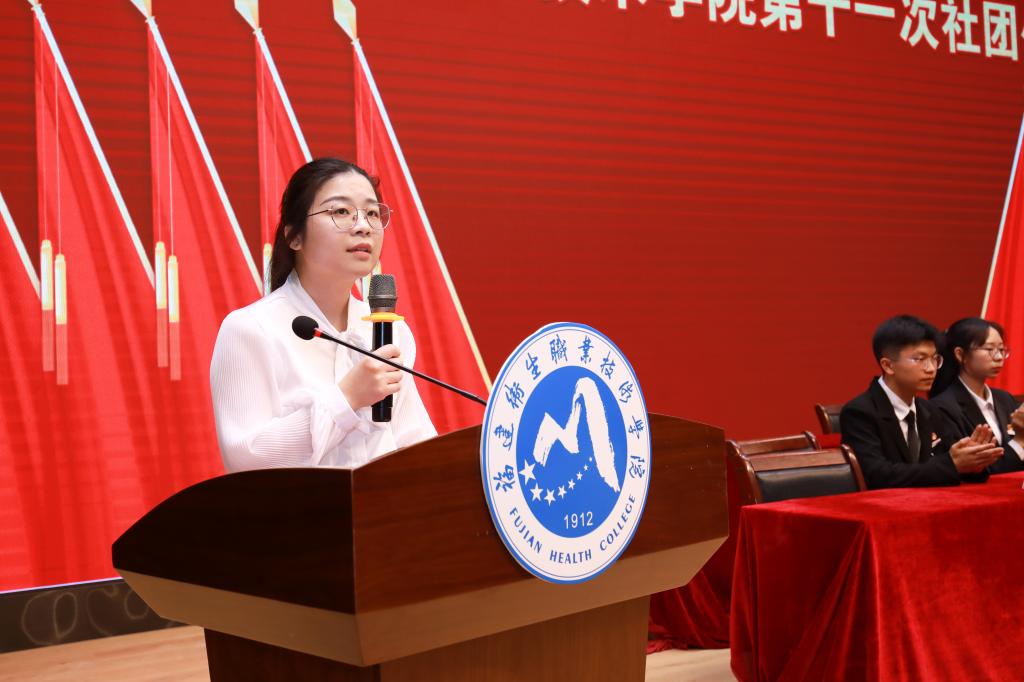 石瑜婷致闭幕词。她表示本次大会的规范召开落实了高校学生会和学生社团改革制度,客观全面地总结了学校一年以来学生会和学生社团工作所取得的主要成绩和基本经验,明确提出了今后一年工作思路和主要任务。她勉励闽卫院学子肩负历史使命,坚定前进信心,立大志、明大德、成大才、担大任,努力成为堪当民族复兴重任的时代新人。