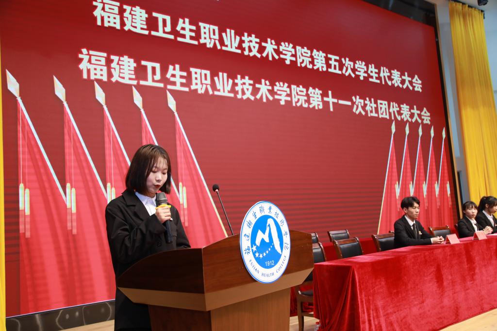 会上,第四届学生会主席团执行主席蔡小华、第十届学生社团负责人叶莹,分别代表学生会和学生社团作工作报告,报告实事求是地总结一年以来学生会和学生社团工作,明确了今后一段时期工作的指导思想和主要任务。会议审议并通过福建卫生职业技术学院学生会章程(草案)、学代会工作报告、社代会工作报告;选举产生福建卫生职业技术学院第五届学生会主席团、第十一届社团部负责人。