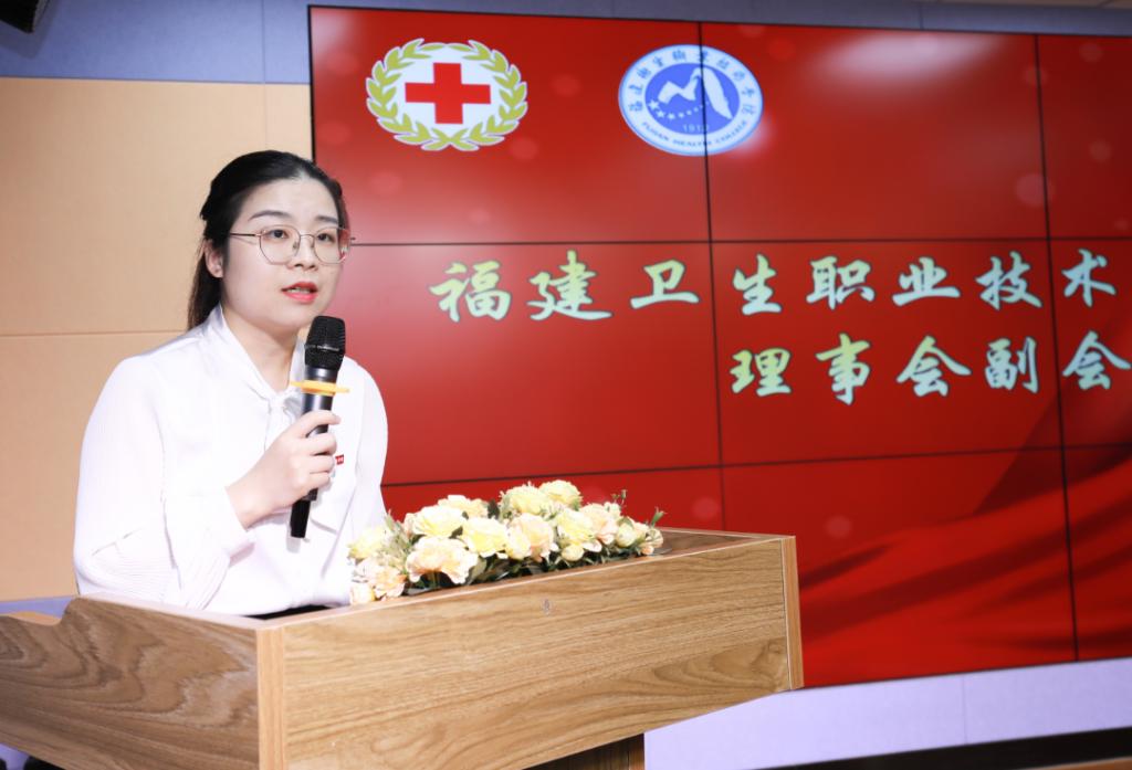 张丽萍宣读表彰决定。医学系红十字会学生分会荣获2020~2021学年福建卫生职业技术学院“红十字会先进集体”;杨梦婷等3名红十字会干部为 “优秀红十字会干部”荣誉称号;王舒婷等5名会员为“优秀红十字会会员”荣誉称号。