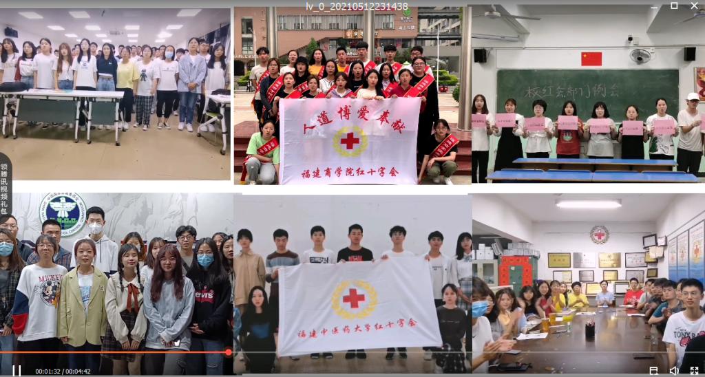 学生分会第一次会员代表大会在观看视频《携手人道,筑梦青春》中开幕,福建中医药大学、福建船政交通职业学院、集美大学、福建农业职业技术学院、福建商学院等六所兄弟院校红十字会学生分会通过视频发来祝贺。