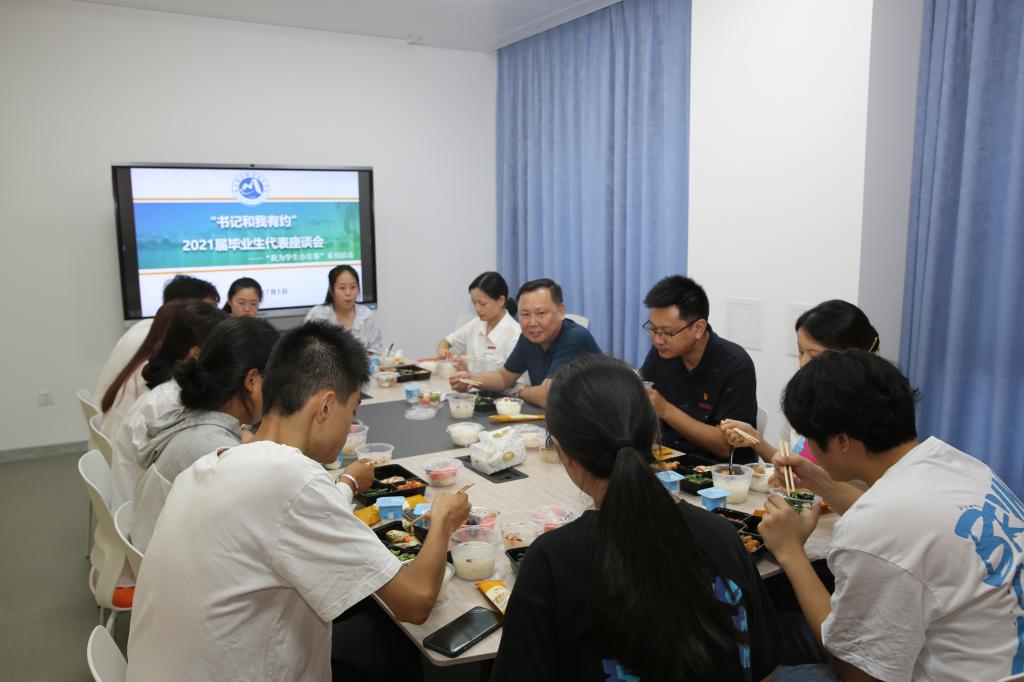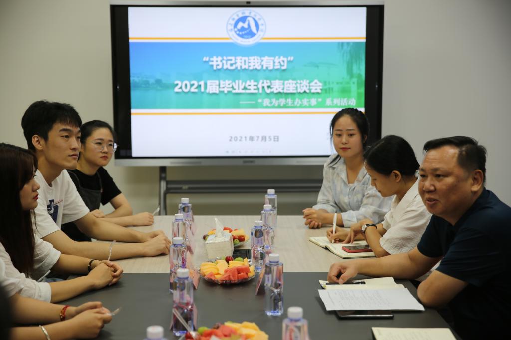 7月5日,2021届学生即将毕业之际,作为“我为学生办实事”系列活动之一,我校党委书记曾武祈在学生服务中心,与10名毕业生代表叙情谊、话成长,座谈会由学生工作部部长宋维主持。