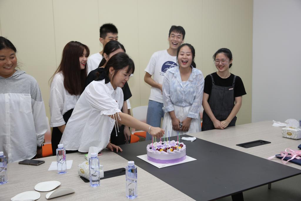 座谈会即将结束之际,在校歌优美的旋律中,学生工作部送上定制的毕业祝福蛋糕,10名毕业生代表分别亲手点燃属于自己的那一支毕业蜡烛,默默许下一个成长的愿望。突如其来的惊喜和温馨,让甜蜜的滋味留存在同学们的舌尖和心头。