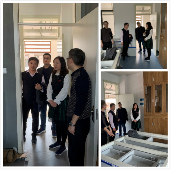 李美华书记先后察看了医学美容技术、预防医学、卫生信息技术实训室,了解施工进度以及安全生产等情况。李美华书记首先向工人们表示感谢和慰问,同时与项目负责人林文霖主任进行了细致交流,听取项目建设情况汇报,询问工程进度,查看施工现场材料和设施。
