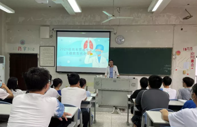 为帮助21级临床医学、医学检验技术、医学影像技术三个专业(高本贯通)班新生尽快适应新的学习生活环境,建立集体归属感,认识专业特点及发展方向,科学规划学习生活。2021年10月14日下午,2021级高本贯通专业主题教育班会在药学系第一阶梯教室召开,会议由学生工作部部长宋维主持,副校长黄铭珊、医学系和医学技术系相关老师与辅导员,以及104名同学参会。