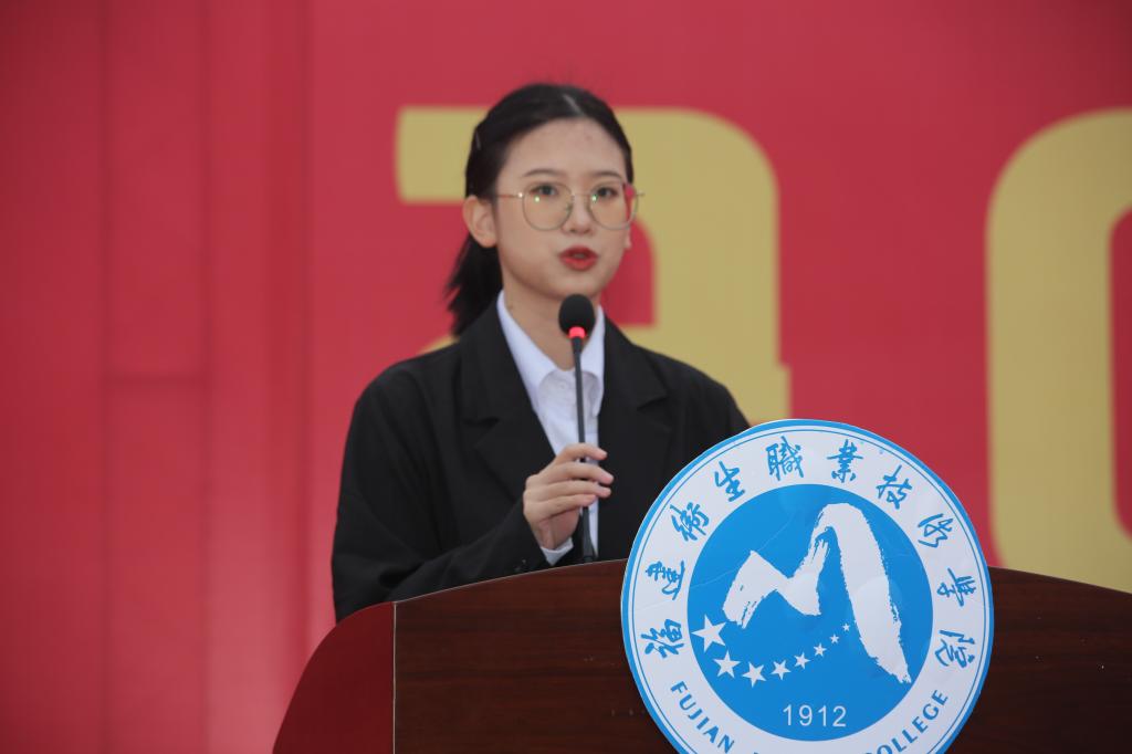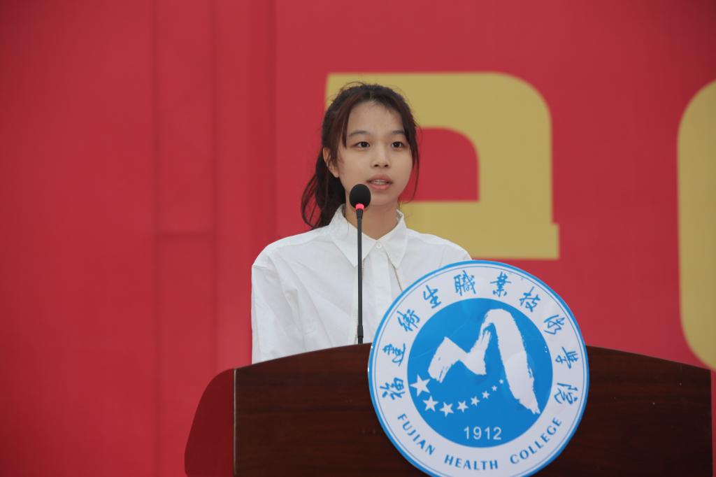 校团委学生副书记20护理303班黄杏怡同学作为学长代表,回顾了自己在闽卫院一年的经历,分享了在过去一个月里参与疫情防控工作难忘的经历和感悟,向学弟学妹们送上美好的祝愿,希望他们的未来熠熠生辉,成为更好的自己。
