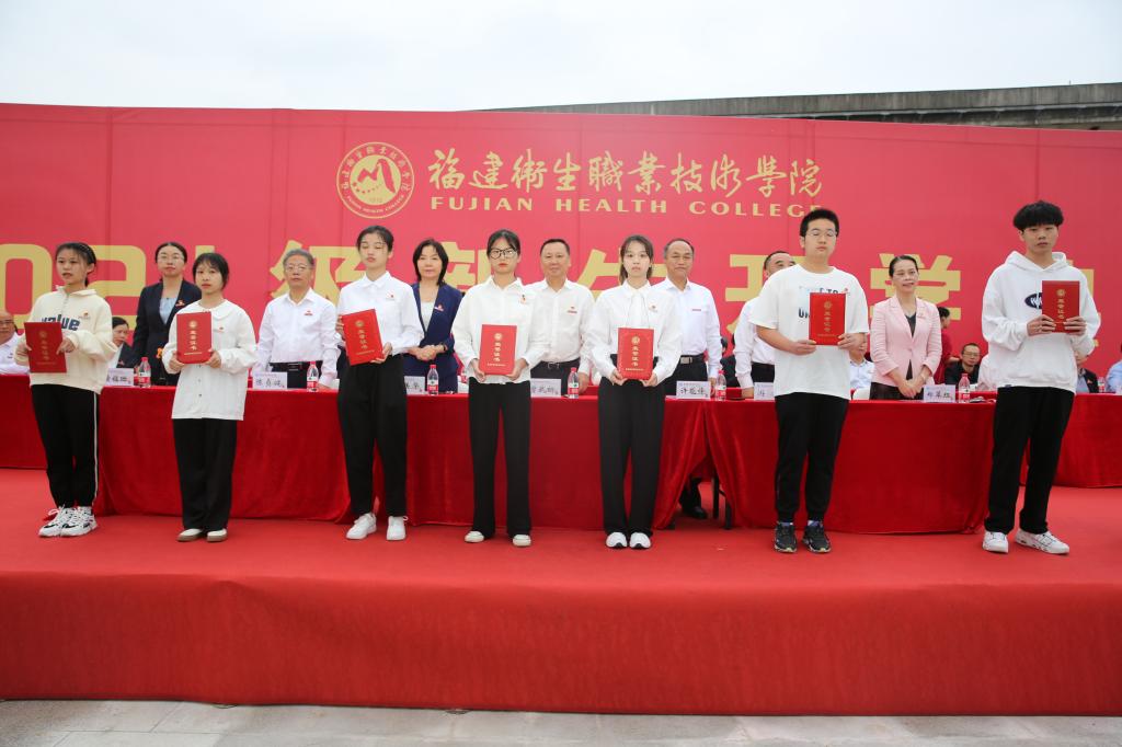 学生工作部部长宋维宣读2021级新生入学奖学金颁发名单,校领导为获奖新生代表们颁发了奖状。今年,我校的生源质量继续提升。录取的超本科线新生达124人,较2020年增加96.8%;获得新生入学奖学金的学生人数,从去年的96人,增加到今年的155人;新生入学奖学金的发放金额,从去年的13.4万元,增加到今年的19.1万元。