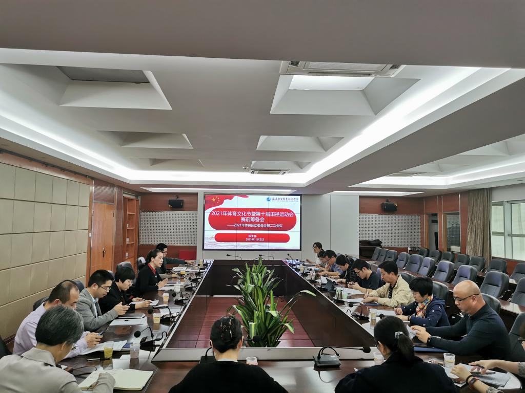 2021年11月2日下午,2021年体育运动委员会第二次会议、体育文化节暨第十届田径运动会赛前筹备会于行政楼第一会议室召开。校体育运动委员会主任郑翠红、副主任宋维以及全体委员参加会议,会议由副主任阮秋容主持。