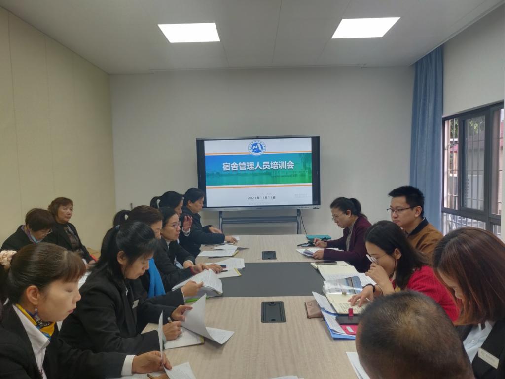 为提升宿舍管理能力,加强团队建设,共建和谐校园,2021年11月11日,学生工作部在学生服务中心举行宿舍管理人员专题培训会。学生工作部、宿舍管理科和物业方有关负责人及全体宿舍管理人员参加本次会议。
