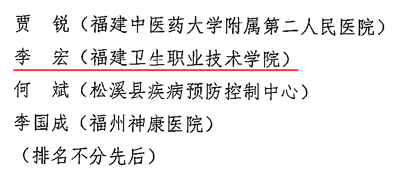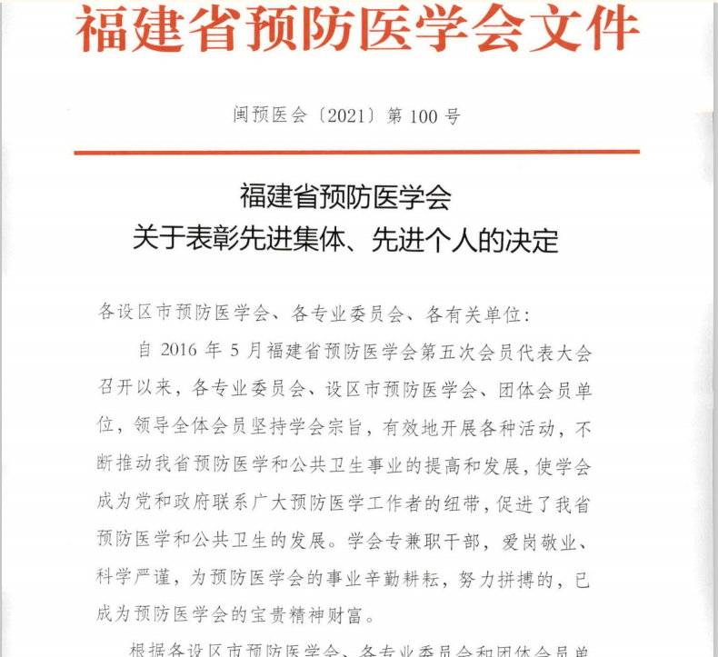 近日,福建省预防医学会发布表彰决定,我校李宏老师荣获2021年福建省预防医学会“先进个人”荣誉称号。