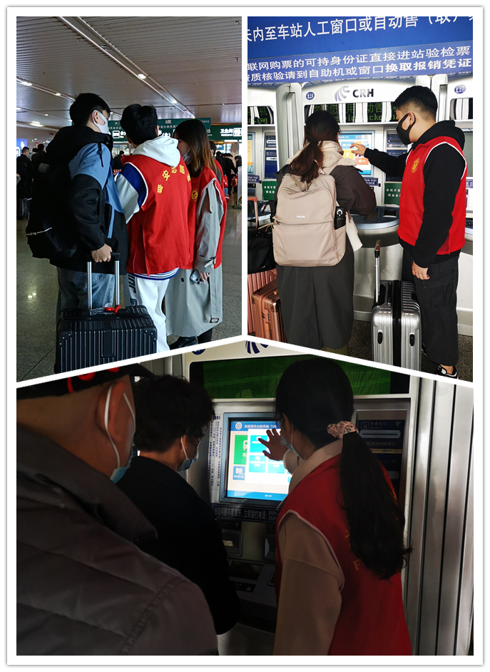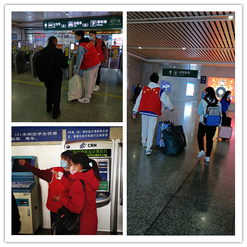 医学院党员志愿者们耐心地回答每一位旅客的问题。