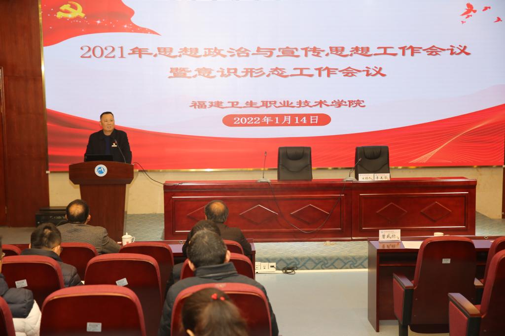 1月14日,我校在实训楼四楼报告厅召开2021年思想政治与宣传思想工作会议。校领导、各职能处室负责人、二级学院(系、部)党政负责人、分管学生工作副书记、思政课教师、专职辅导员、教师代表120余人参会。会议由校党委副书记李美华主持。