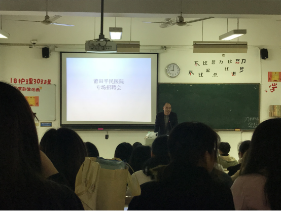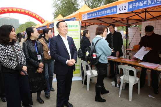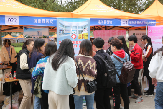 招聘会现场气氛浓烈,秩序井然,毕业生积极与招聘人员交流,了解用人单位情况,寻找满意的岗位,不少学生现场达成就业意向。另外,来自南平延平区卫计局、建瓯市卫计局、浦城县卫计局、政和县卫计局、武平县卫计局、罗源县卫计局等下属的乡镇卫生院招聘展位吸引了不少前来咨询的同学,今年部分基层乡镇卫生院需要的紧缺专业(如临床医学、医学影像技术、医学检验技术等)可以直接现场面试签定协议,反映了我院的人才培养定位符合福建省基层卫生技术人才的需求。