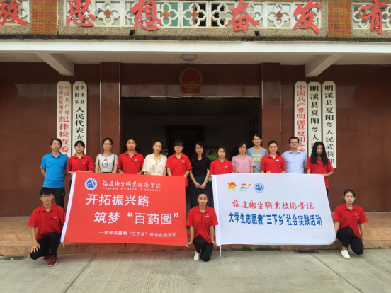 药学系党总支高度重视,团总支认真指导,炫药青春实践队成功申报并立项团中央学校部“丝路新世界•青春中国梦”大学生暑期社会实践专项行动。2018年7月奔赴三明市明溪县夏阳乡展开实地调研,以“开拓振兴路,筑梦百药园”为主题,联合当地乡镇政府,围绕道地药材种植,助力产业振兴开展实践活动。此次活动中国青年网、中国青年之声、团中央未来网、明溪县夏阳乡官微等多家媒体的广泛报道,报道通讯达20余篇,形成4篇田野日记,4段调研视频,1篇调查报告上传于中国大学生“一带一路”协同中心网站;成功申请团中央2018年大中专生三下乡“千校千项”活动中的“好项目”专项活动评比、参选未来网2018全国优秀实践团队评比。