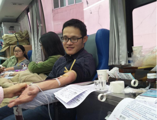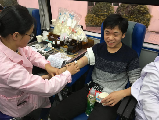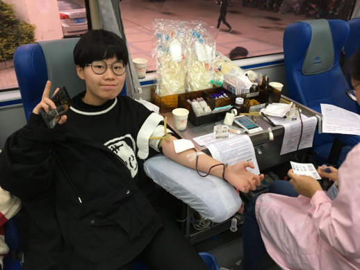 一名大二的同学,在校两年已经成功献血3次,累计1200毫升。她说:“曾经我是病床上的受助者,现在我会把这份爱心传递出去,也希望更多同学一起参与!”