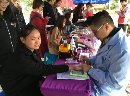寒冷的天气并未阻挡大家的献血热情,活动现场不乏献血多次的同学们,为自己的行动能挽救更多的生命感到高兴。志愿者们也是一道亮丽的风景线,他们脸上洋溢着笑容,热心地为大家服务。有的一边发放宣传单,一边为来往的师生宣讲无偿献血知识,有的耐心指导献血者填写表格,为了对献血者和将来的受助者负责,现场还按照有关规定,为献血者进行严谨的筛查!