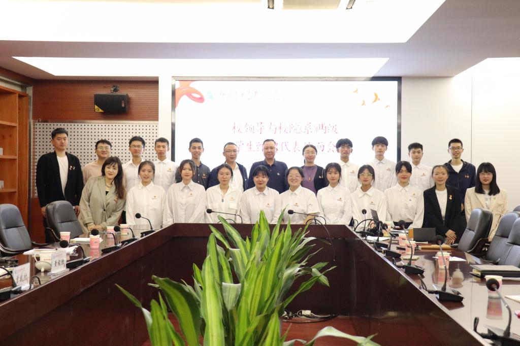 5月23日,校领导与校院(系)两级学生组织代表见面会在行政楼四楼会议室举行,校党委书记曾武祈、副校长黄铭珊出席会议。校团委负责人、各院系团总支书记、校院(系)两级学生组织代表参加会议,会议由校团委书记林桂松主持。