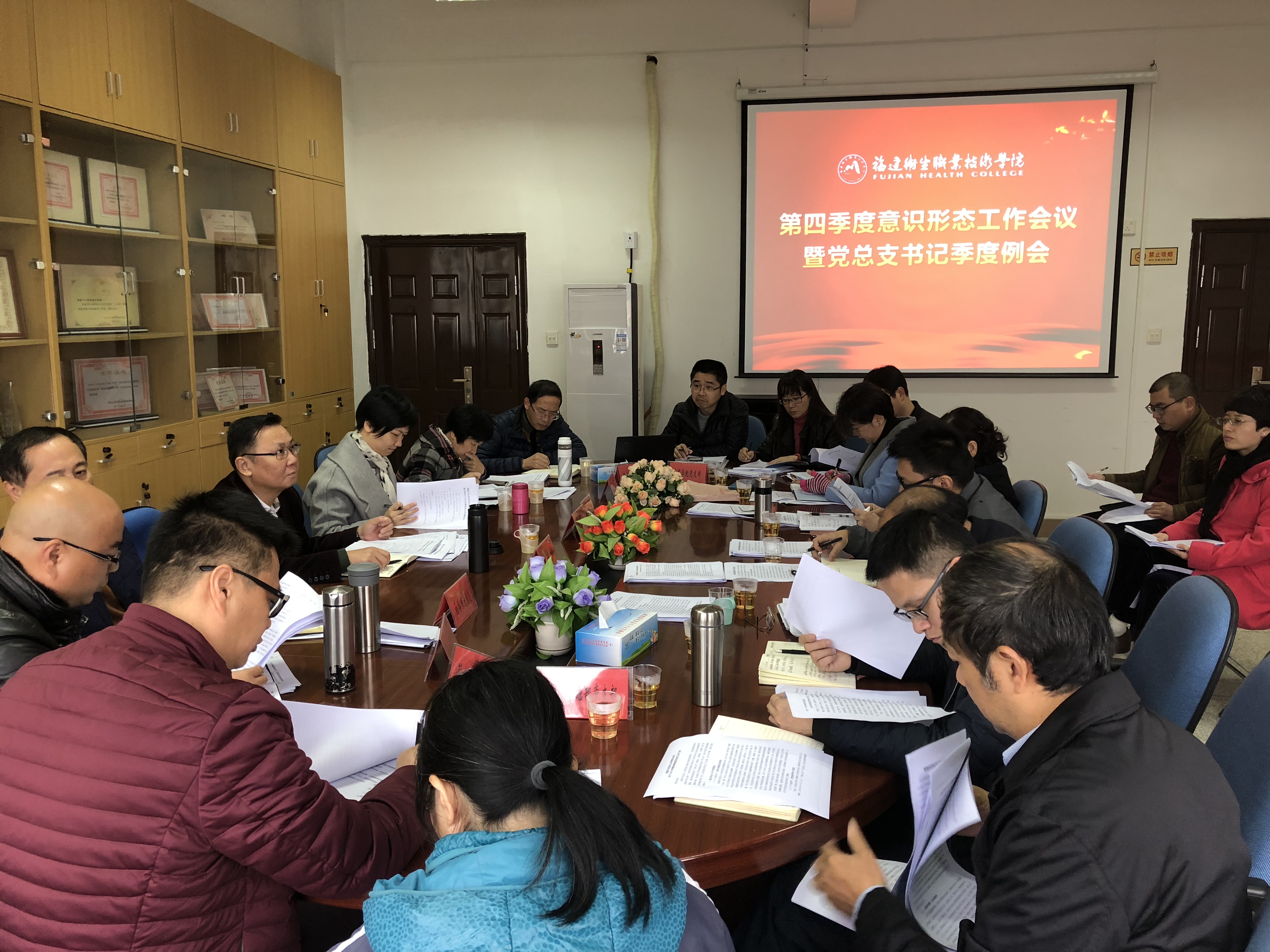 12月25日上午,学院2018年第四季度意识形态工作会议暨党总支书记例会在医学技术系三楼会议室召开。学院党委书记曾武祈、意识形态工作领导小组办公室成员及各党总支(直属党支部)书记参加会议,会议由党委工作部部长吴华主持。