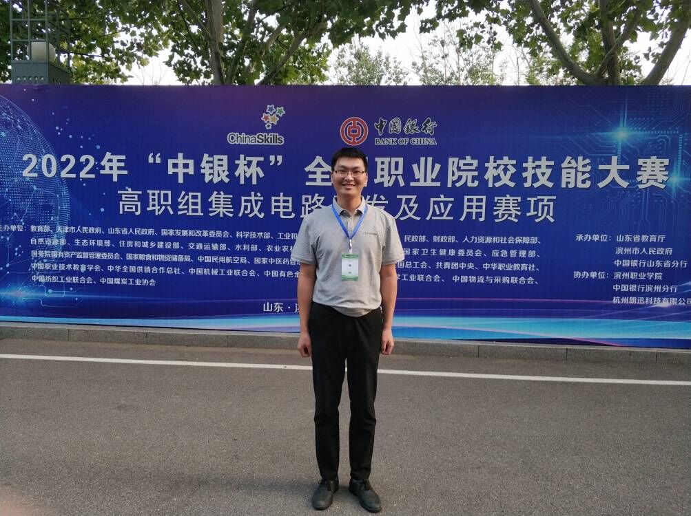 高手云集齐鲁,技能强“芯”报国。2022年8月29日至31日,2022年全国职业院校技能大赛高职组集成电路开发及应用赛项在滨州职业学院举行。本次大赛由教育部等36个单位主办,山东省教育厅、滨州市人民政府承办,滨州职业学院、杭州朗迅科技有限公司协办,来自全国各地50支代表队150名选手共聚齐鲁大地,展开激烈角逐。我校医学技术系副主任钟伟雄受聘担任此次大赛集成电路开发及应用赛项裁判。