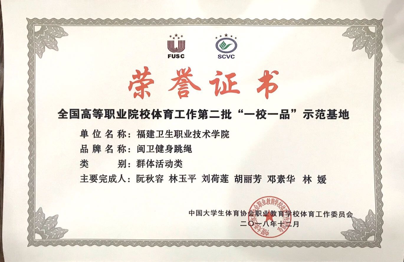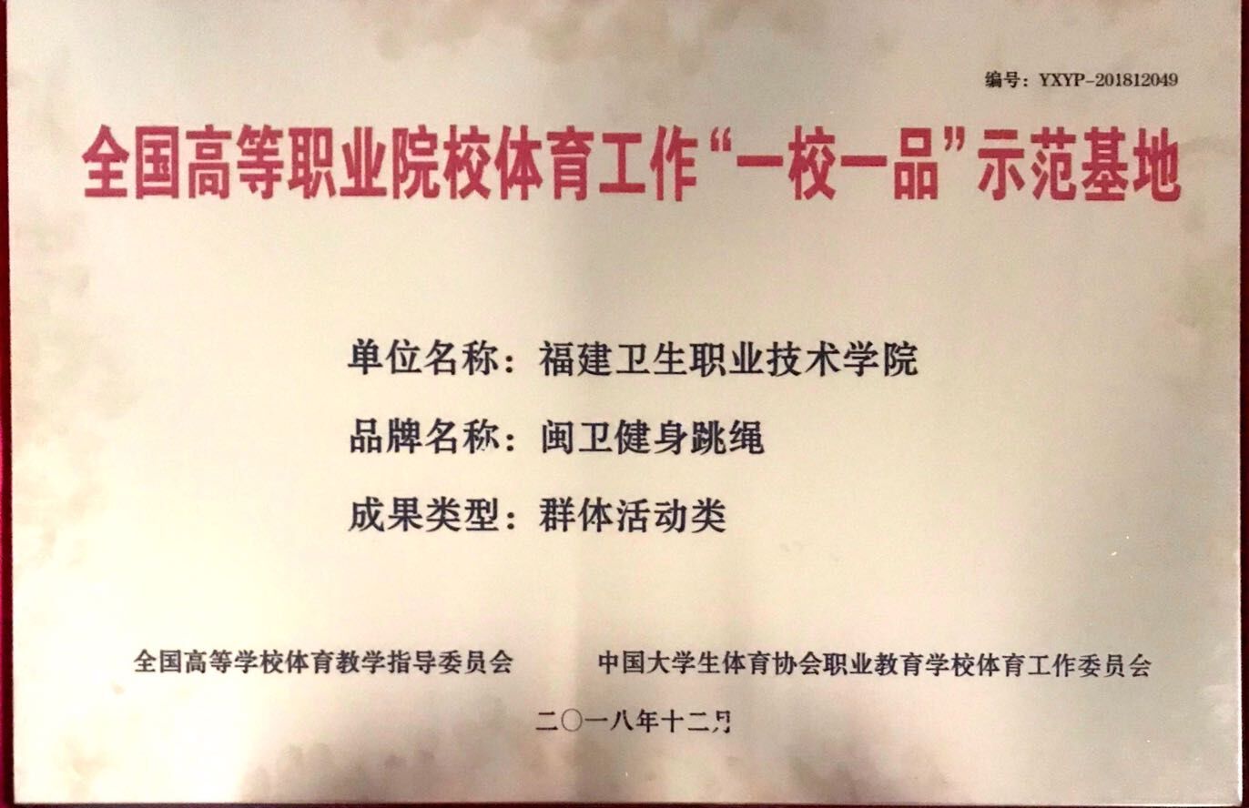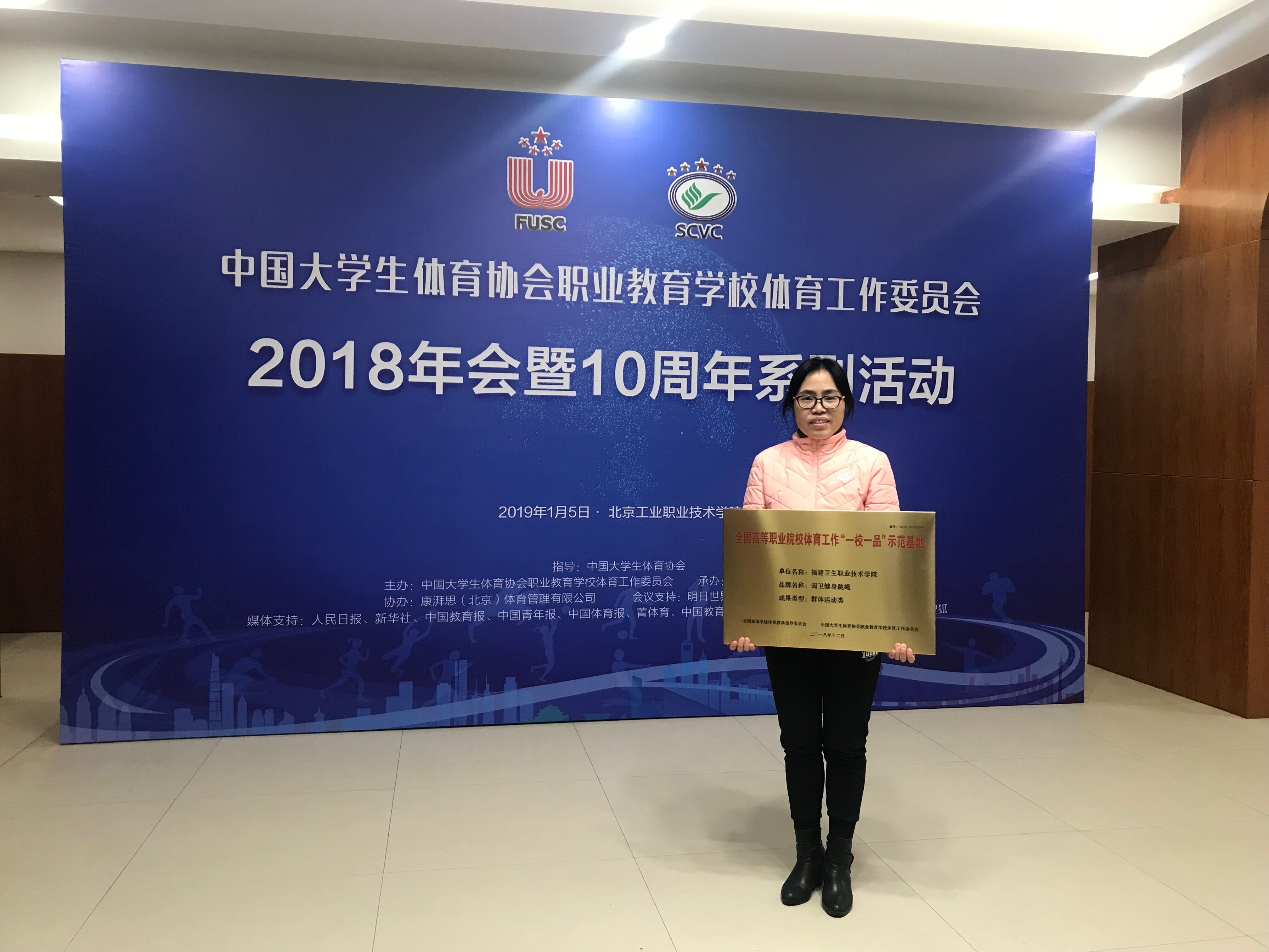 1月4日至6日,中国大学生体育协会职业教育学校体育工作委员会2018年度工作会暨分会成立10周年系列活动在北京工业职业技术学院隆重召开。由我院基础部阮秋容教授主持的“闽卫健身跳绳”(群体活动育人类)项目入选全国高等职业院校体育第二批“一校一品”示范基地并授牌。