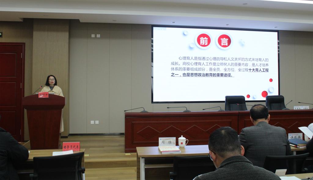 会上,马克思主义学院院长熊美兰、心理健康教育中心教师余彩云依次作题为《思政课守正创新规范化建设试点项目工作汇报》《“健康中国”背景下心理育人体系建设与工作实践》的经验交流。
