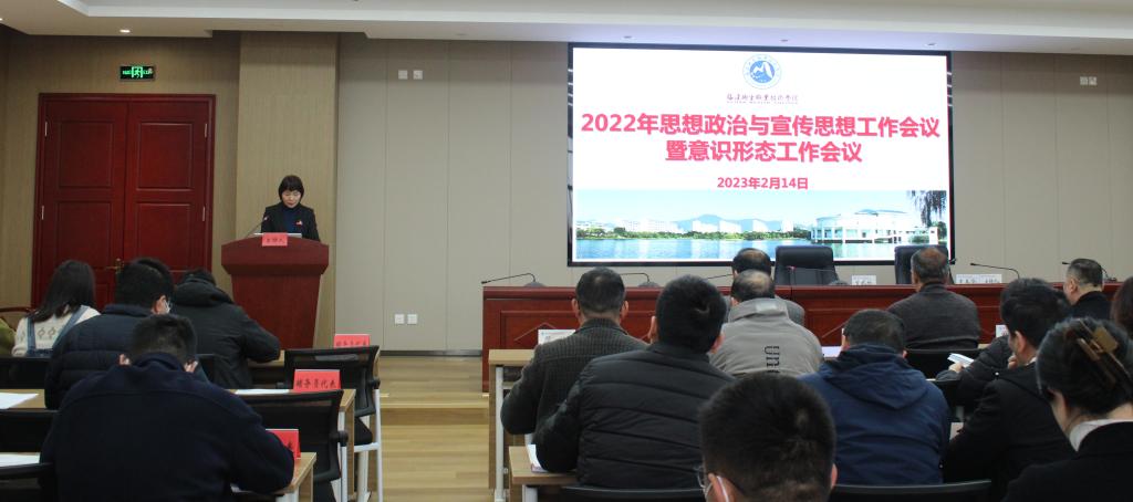 2023年2月14日,我校在行政楼六楼会议室召开2022年下半年意识形态工作会议。学校意识形态工作领导小组及办公室成员、思政课教师、辅导员代表参加会议,会议由校党委副书记李美华主持。