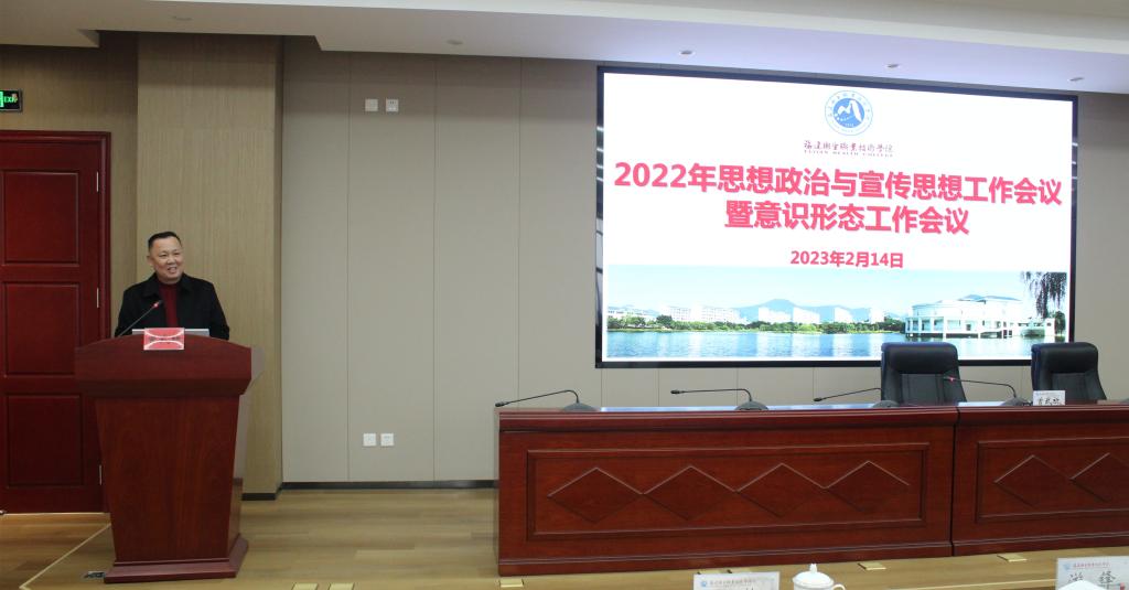 随后,党委书记曾武祈对学校一年来的思想政治与意识形态工作进行全面的总结和下一步工作安排部署。他指出,2023年要提高学习教育长效化,增强思政课程规范化,推进医学人文校本化,贯彻落实“立德树人”目标,全力推进学校意识形态工作再上新台阶。