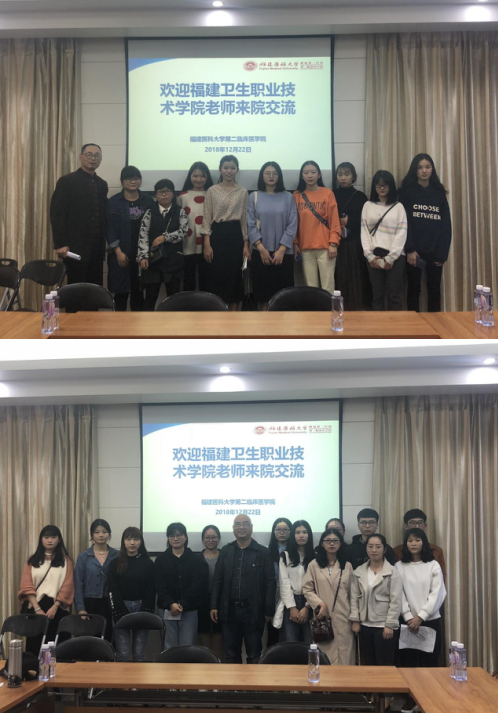 12月22日,我院苏友新院长率队前往福建医科大学附属第二医院、泉州市第一医院进行临床教学巡查,随行的还有教务处朱扶蓉处长、王珊珊副处长,药学系肖健副主任,医学技术系邱滚忠副书记,护理系林桂松副书记等5人。本次巡查通过座谈会形式,向医院领导、分管教学主管部门及相关科室带教老师了解2016级实习生实习情况,并与在两家医院实习的2016级实习学生进行了交流。