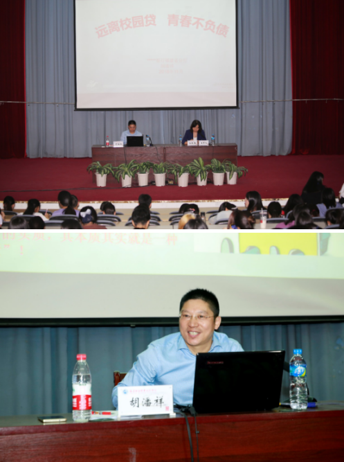 讲座中,胡潘祥首先介绍了本次讲座的背景,指出打击和防范“非法校园贷”、普及金融知识,提升金融安全意识的重要性。随后,从校园贷存在的现状、诈骗形式与手段、影响和危害、生活中发生的真实案例及防范措施等方面为大家进行深入浅出的讲解。最后,他希望广大在校学生要树立正确的消费观、切忌以贷养贷,充分发挥生源地国家助学贷款、奖助学金、勤工助学等资助的作用,加强对个人信息的管理;针对远离校园贷,他提出了4点建议:一是要有自我判断能力,理性消费;二是合理规划,抵制诱惑,拒绝网贷;三是多与家长老师沟通,避免上当受骗;四是从自身出发,学业为主,多方面发展。
