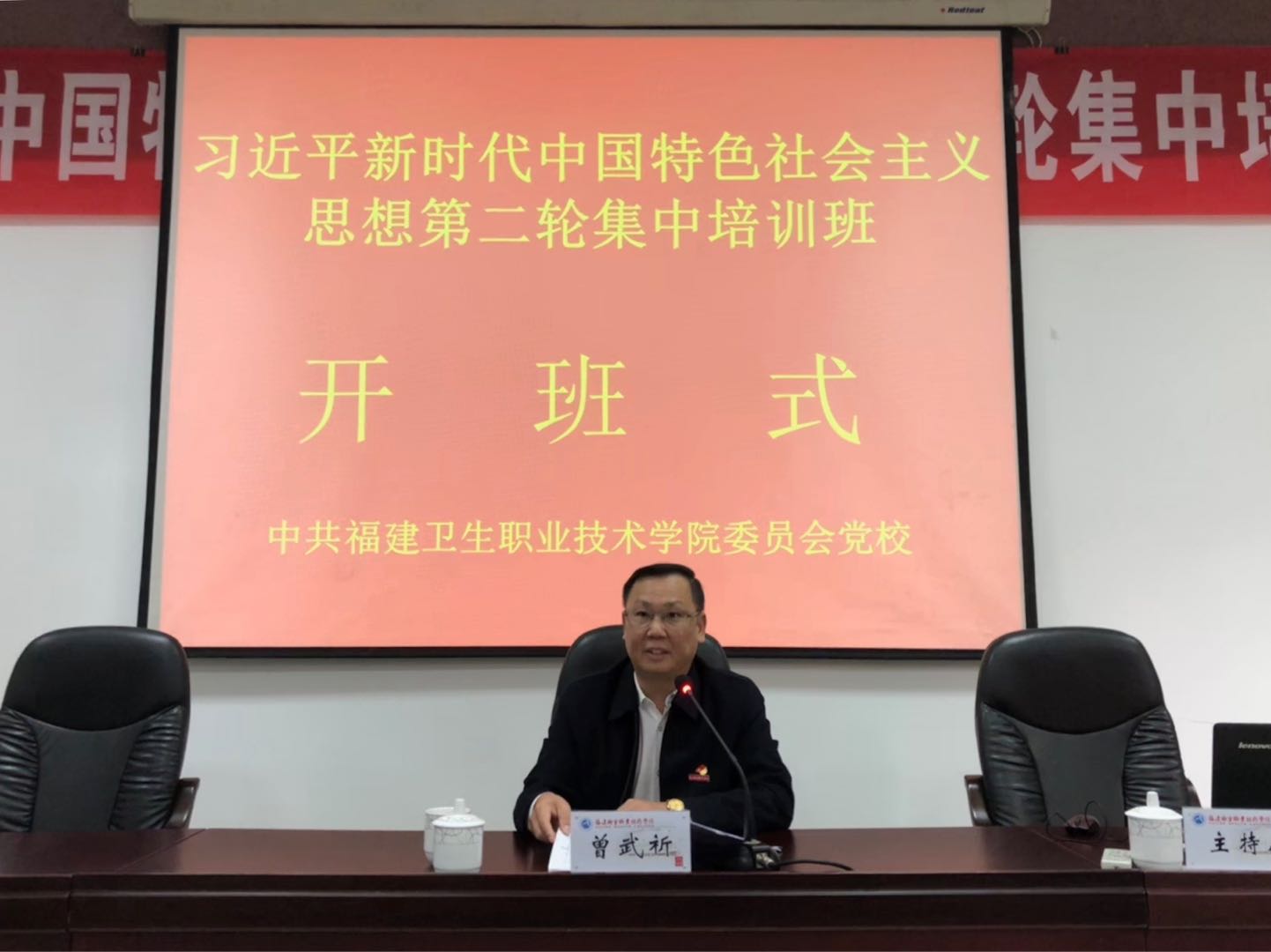 11月14日上午,我院党校举办的习近平新时代中国特色社会主义思想第二轮集中培训班在福州市委党校开班。福建省委教育工委副书记王建南、我院党委书记曾武祈、院长苏友新出席了开班仪式。参加本次研讨班的有学院全体处级干部、全体党务干部、校园网络文化五支队伍有关人员等近百人。开班仪式由曾武祈书记主持。
