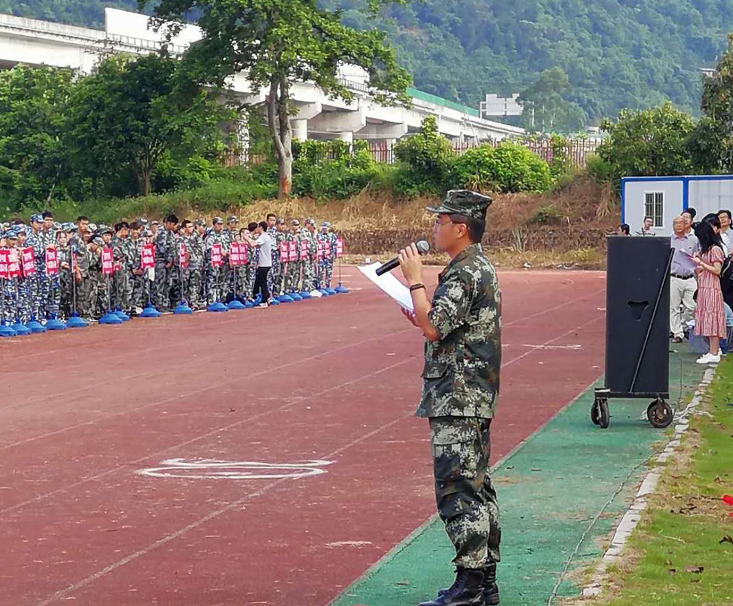 随后,武警总队机动支队曾建基大队长做了讲话。他表示开展军事训练是国防法赋予新时代大学生的一项基本任务,是加强国防后备力量建设的时代要求;通过严格的军事训练,不仅能激发学员的爱国热情,培养吃苦耐劳的精神,加强集体意识,从而进一步提高学生的身体素质,同时掌握基本军事知识和技能。他希望军训学员在军训期间,以良好的心态迎接挑战,服从指挥认真学习,劳逸结合,一切行动听指挥,团结协作克服困难,加强组织纪律性,严格要求自己练就基本军事素质和本领,以饱满的精神面貌圆满地完成军训任务。
