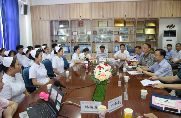 为认真学习贯彻习近平新时代中国特色社会主义思想,坚决打赢打好精准脱贫攻坚战,2017年我院与南平市扶贫协会等政府部门、福建瑞泉集团等企业合作,招收“中职护理专业精准扶贫班”学生80余名,现已顺利办学一周年。9月20日,省、市扶贫两会领导,再次来到我院对该项目调研指导,并与师生代表进行了亲切座谈。