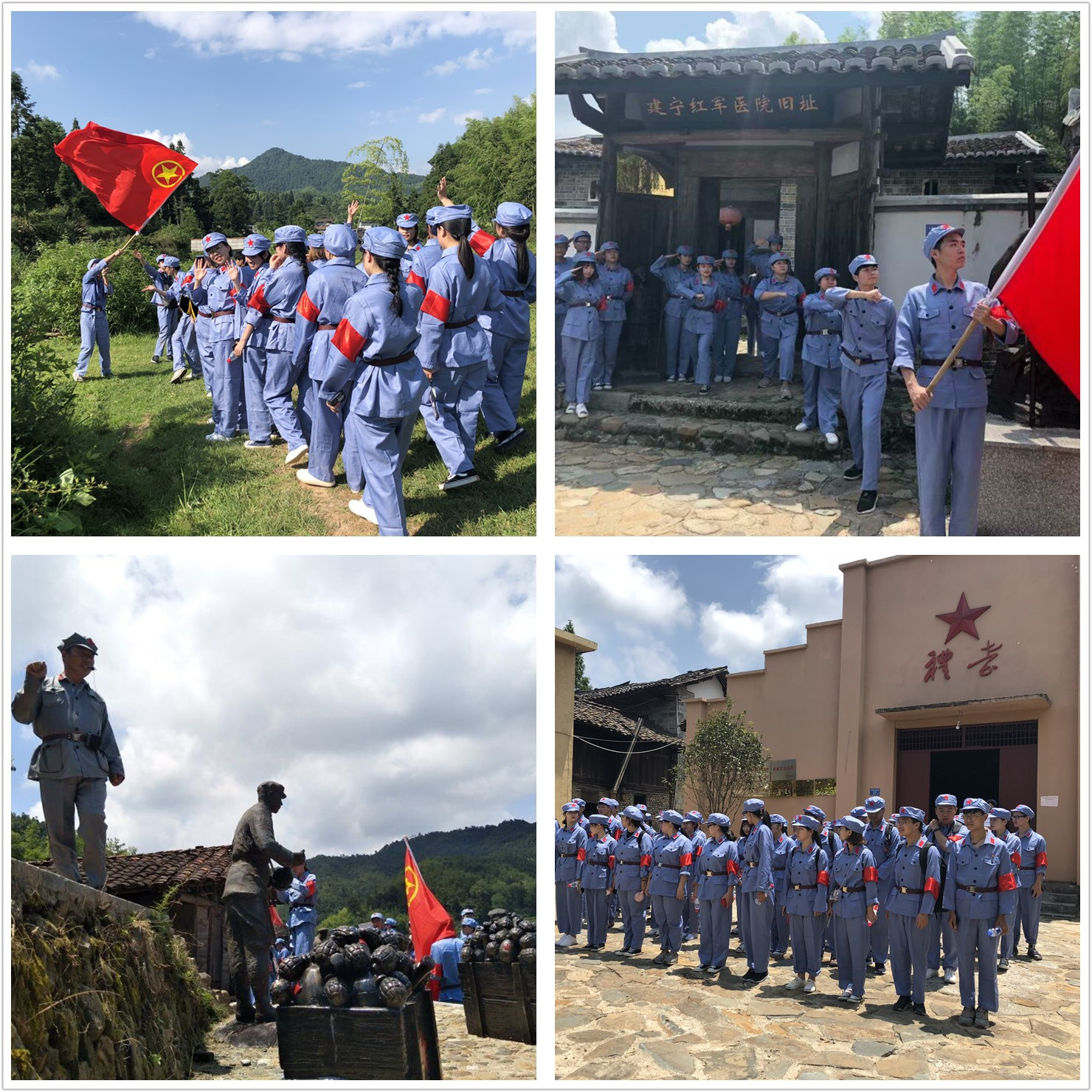 访建宁苏区,重走红色实践路。“建宁中央苏区是毛泽东、周恩来、朱德等新中国缔造者亲自创建的,是闽西北革命根据地的中心,第二次国内革命战争时期在这块古老的土地上演绎了一曲曲感天动地的革命壮歌……”中共建宁县委党校宁美德老师的引导下,队员们学习建宁苏区史,探秘“红色小井冈”。队员们实地考察了建宁中央苏区反“围剿”纪念园和闽赣基干游击队司令部旧址、红军医院旧址、苏区银行旧址、红军兵工厂旧址、苏区政府旧址、红军被服厂等革命遗址,并穿上红军服,扛起团旗,重走红军路,踏上新征程。