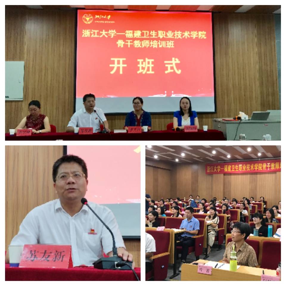 8月19日上午,福建卫生职业技术学院2018年暑期骨干教师培训班在浙江大学继续教育学院开班,苏友新院长、黄铭珊副院长出席了开班仪式。本次培训班是继复旦大学管理干部研讨班、古田干部学院新教师及辅导员培训班后,我院今年“三个一百”学习培训班的最后一个班次,学院专业带头人(专业负责人)、教研室主任(实训中心主任)及骨干教师等100人参加本次培训学习。