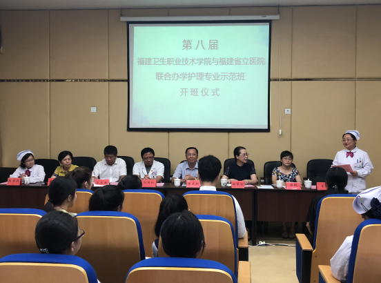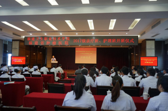 2018年9月3日上午,我院党委书记曾武祈、院长苏友新、副院长郑翠红率队先后前往福建省立医院、福建省肿瘤医院、福州东南眼科医院出席2017级护理、影像技术(放射治疗方向)、眼视光技术专业校企合作班开班仪式。参加开班仪式的还有各医院领导,双方有关职能科室负责人,学院相关系部主任、专业带头人、教研室主任及四个班级的全体学生。