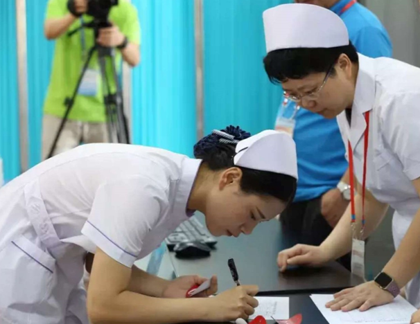 本次大赛由各省、自治区、直辖市经预赛选拔的优秀选手组成代表队,每名选手首先在健康评估室书面完成临床护理案例分析,然后进入操作室根据患者病情及医嘱要求,先后完成右踝扭伤固定包扎、徒手心肺复苏、静脉留置针输液、气道切开护理四项护理技能操作,主要考核选手护理思维判断、分析问题、解决问题的能力,检测选手急救护理技能操作水平及人文职业素养。