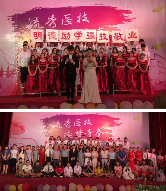 开场舞《司花令》将一片欢乐的气氛带入了现场,情景剧《学霸宿舍的那些事》诙谐生动的表演引发台下阵阵笑声和掌声,辅导员梁永超和学生一起朗诵的《学会感恩》节目更是深受观众喜爱,让在场的同学们经受了一次艺术的大洗礼。《毓秀医技,逐梦青春》大合唱将晚会推向了高潮,在美妙的歌声中,本次晚会落下了帷幕。愿我院所有学子,都能像歌中所唱到的那样,带着梦想和祝福,一起逐梦!