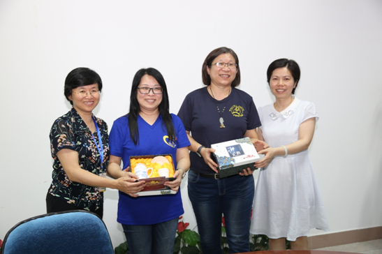 护理系谢涛书记、龚海蓉副主任与台湾辅英科技大学廖怡惠主任互赠礼物