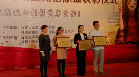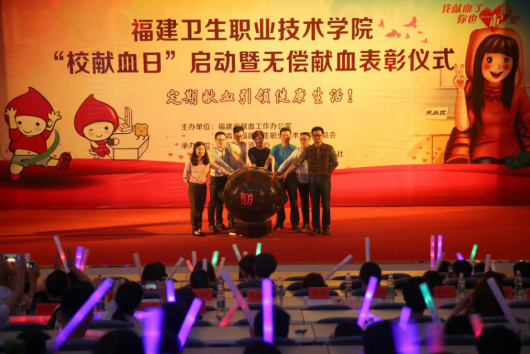 4月11日,福建卫生职业技术学院“校献血日”启动暨2016-2017年度无偿献血表彰仪式隆重举行。此次活动由福建省献血工作办公室、共青团福建卫生职业技术学院委员会主办,福建卫生职业技术学院学生会、学生社团联合会血缘社承办。福建省血液中心副主任曾嘉、福建卫生职业技术学院党委副书记林建团出席,福建省血液中心和宁夏血液中心来宾、福建卫生职业技术学院师生等400余人参加。