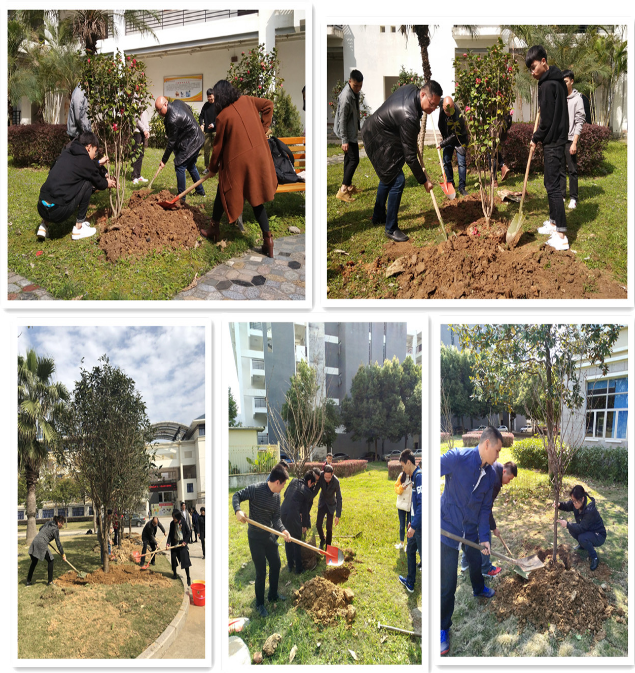 为贯彻落实党的十九大对生态文明建设作出的战略部署,建设美丽校园,我院组织开展“让绿色妆点校园,让师生共享美丽”主题植树活动。 3月12日上午,曾武祈书记、苏友新院长等院领导带领各职能部门、各系部负责人及学生代表参加本次植树活动。活动现场众人热情高涨,扬镐挥铲,培土浇水,一片热火朝天而又井然有序的景象。大家用实际行动为美丽校园建设再添一抹绚丽的绿意。