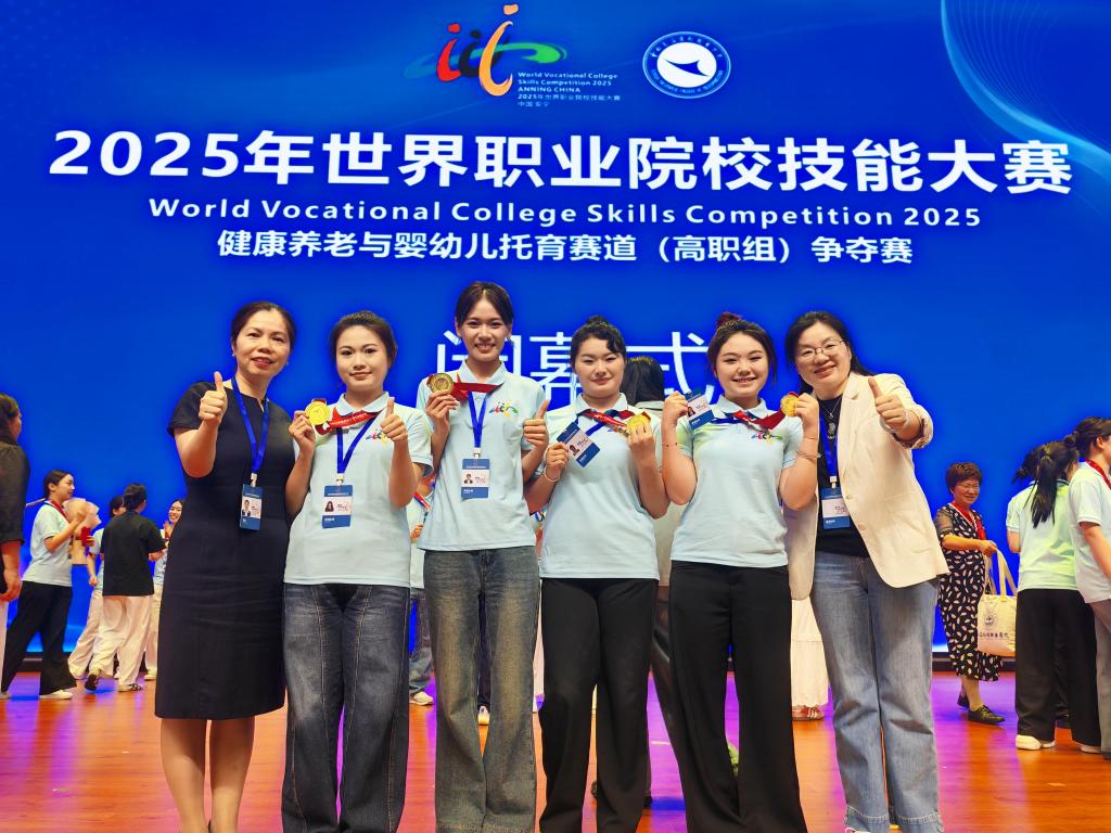 此次夺金,不仅是参赛师生的荣耀,更是全校合力的结晶。成绩的取得,得益于学校党政领导的提前谋划与殷切关怀,也离不开兄弟学院和行业专家的倾心相助。正是这种上下同欲、合力共进的坚实支撑,成就了我校代表队在赛场上的自信与辉煌。健康学院将以此次夺金为新的起点,继续秉承“以赛促学、以赛促教、以赛促建、以赛促研”的育人理念,把世界职业院校技能大赛的标准与人才培养深度融合,不断优化课程体系,创新教学模式,推动产教融合与校企合作,着力培养更多“技能精湛、素质全面、心怀温度、勇于创新”的高素质养老与健康服务人才,为健康中国建设贡献力量。