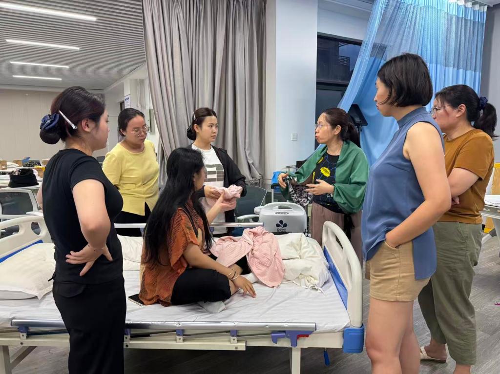 备赛期间,健康学院高度重视,学院党政班子与教师团队齐心协力、团结奋战,共同保障备赛工作的顺利推进。学院党委书记龚海蓉挺膺担当,主动担任赛队的指导教师,身体力行,全程负责赛事统筹与指导;院长庄海林积极协调资源、把控训练细节,并多次在关键节点上做出重要决策;指导教师聂小凤与揭金花、鄢灵雯、吴晶等多位老师组成攻坚团队,全身心投入到赛队的指导和训练。整个指导团队展现出极强的韧性和追求卓越的精神,为大赛做足充分准备。在比赛出发前两天,健康学院组织党政班子对训练成果进行了全流程的演练验收。与初期相比,训练成果呈现出根本性的蜕变。