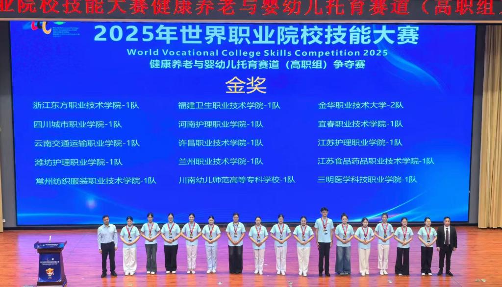 8月28日至9月2日,世界职业院校技能大赛总决赛健康养老与婴幼儿托育赛道(高职组)在云南省安宁市云南交通职业技术学院举行,这也是我校参加本届技能大赛的最后一个赛道。该赛事吸引了全国各高职院校的155支顶尖队伍参与,是一场技艺与智慧的巅峰对决。选手们切磋技艺、展示风采,这不仅是技能水平的竞技比拼,更是对新时代职业教育成果与人才培养水平的一次集中检阅。我校公共卫生与健康管理学院代表队凭借精湛的专业技能、沉稳的心理素质和强大的综合实力,以633分的优异成绩荣膺金奖,实现了我校在健康养老与婴幼儿托育赛道上的历史性突破,为我校在本届大赛画上了圆满的句号。