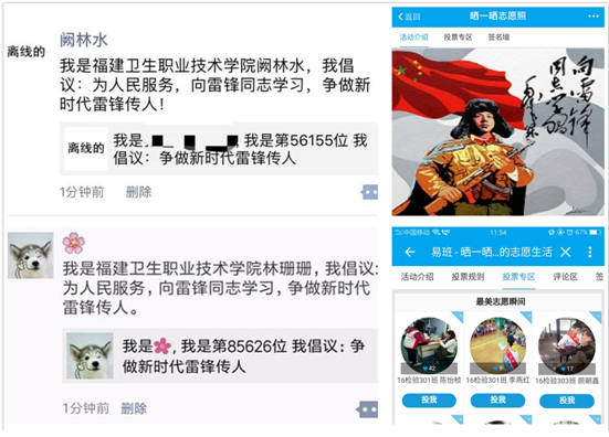 主题活动月期间,各系结合专业实际,通过主题观影活动、主题分享会、主题学习会、主题竞赛等形式开展以学习雷锋为主题的团日活动125次,覆盖122个团支部;开展“2018福建永泰马拉松赛事医疗服务”“3.24世界肺结核防治日知识宣传”等志愿服务71次,参与志愿服务的师生数共计1500余人次;通过微信公众平台、易班等网络平台开展“晒一晒我们的志愿生活”、 学雷锋“志愿者榜样评选等网上主题活动7场。