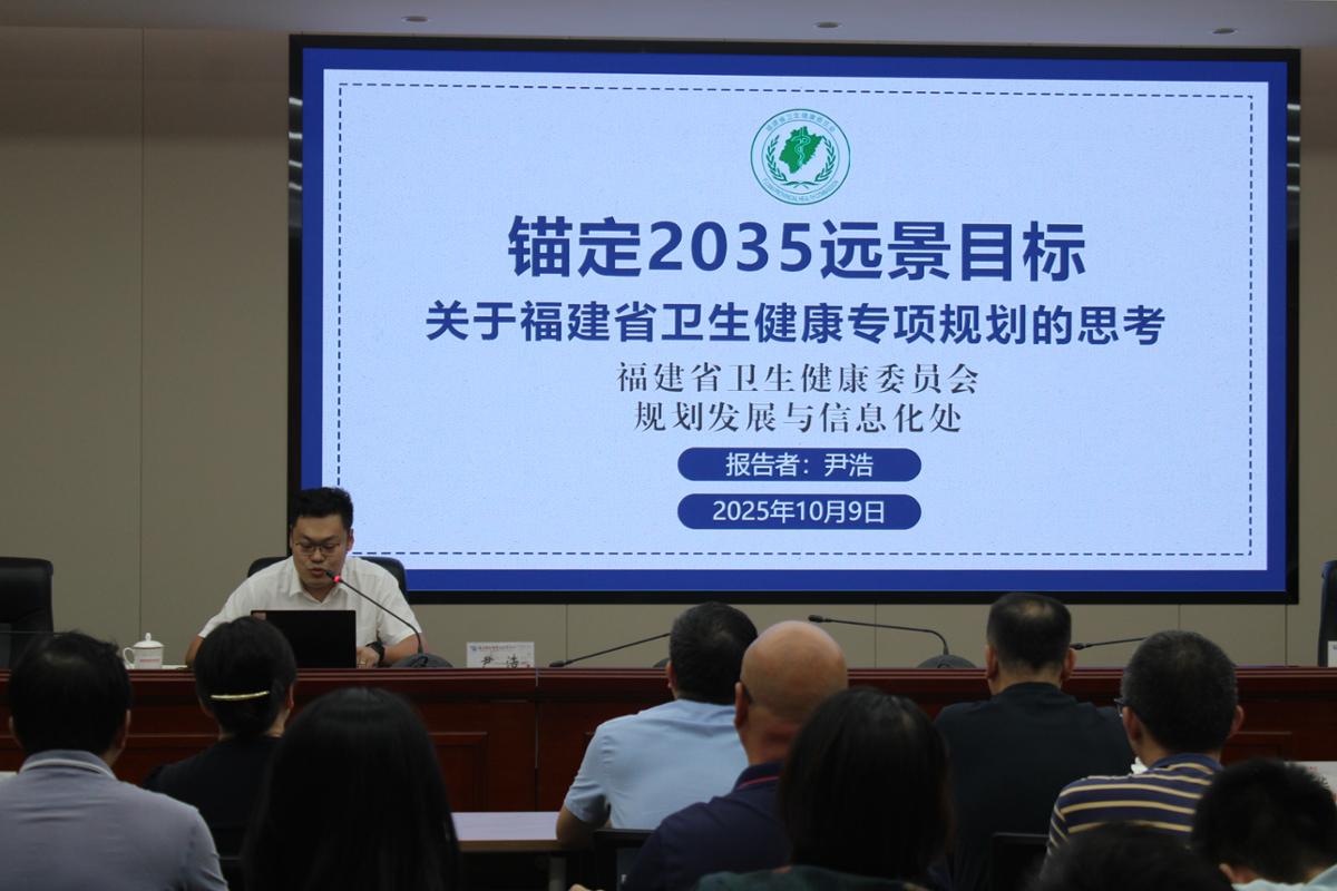 为科学把握卫生健康事业发展蓝图,精准理解福建省卫生健康事业“十五五”规划的核心要义,10月9日,学校在厚德楼六楼会议室举办福建省卫生健康专项规划专题讲座,邀请福建省卫生健康委员会规划发展与信息化处尹浩博士作专题报告,讲座由副校长朱扶蓉主持。