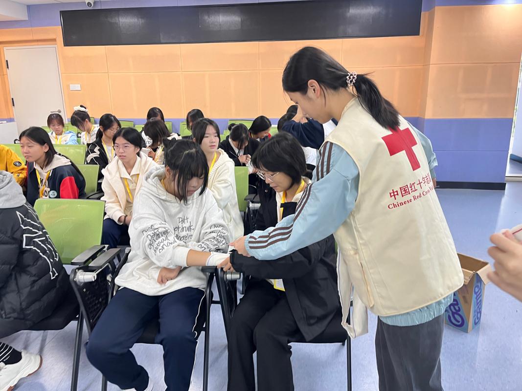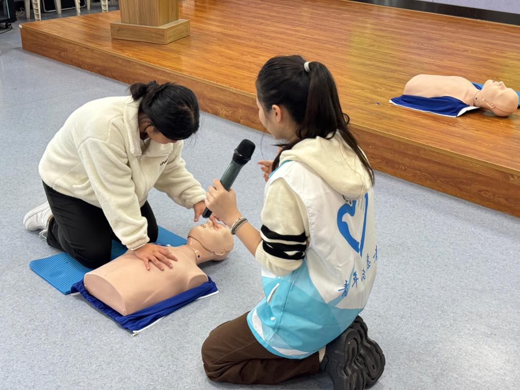 在红十字生命教育体验学堂,师生们通过模拟场景开展实操学习。在应急救护、火灾避险和地震防御三大主题展区,大家认真学习心肺复苏与伤口包扎技巧,亲身体验烟雾通道逃生与灭火器操作,并在动态平台上掌握规范的地震避险动作。活动不仅提升了师生的安全防范意识与应急处置能力,更将“健康第一”的理念转化为实实在在的实用技能。
