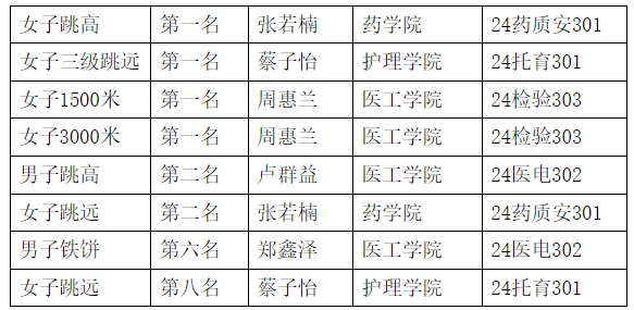 我校田径队6名运动员在体育部唐圣、崔国正、连期待等老师的悉心指导下认真备战、刻苦训练,赛场上不畏强手、勇于拼搏,经过3天的激烈角逐,获得4金2银的佳绩,并打破1项校田径最高纪录。